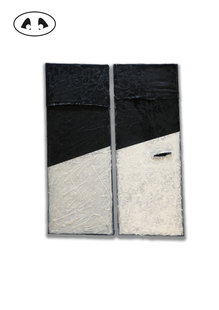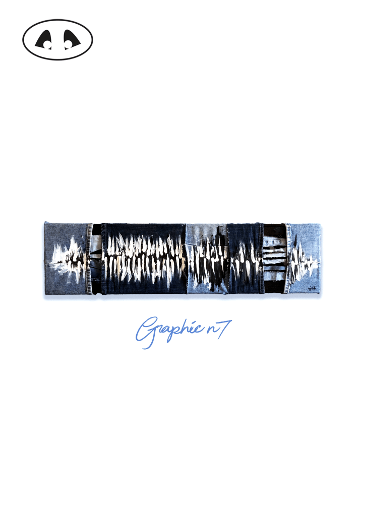 Le mouvement de la peinture est une manière abstraite de retranscrire le mouvement. Dans cette série ce mélange le figuratif et l’abstrait toujours sur toile en Jeans upcyclés.