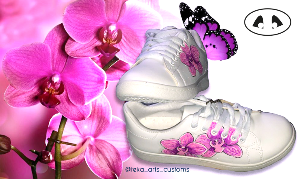 Customisation sur les 2 baskets avec un dessin sur chaque basket selon votre goût. Paires de Lacets offertes. Modèle unique.