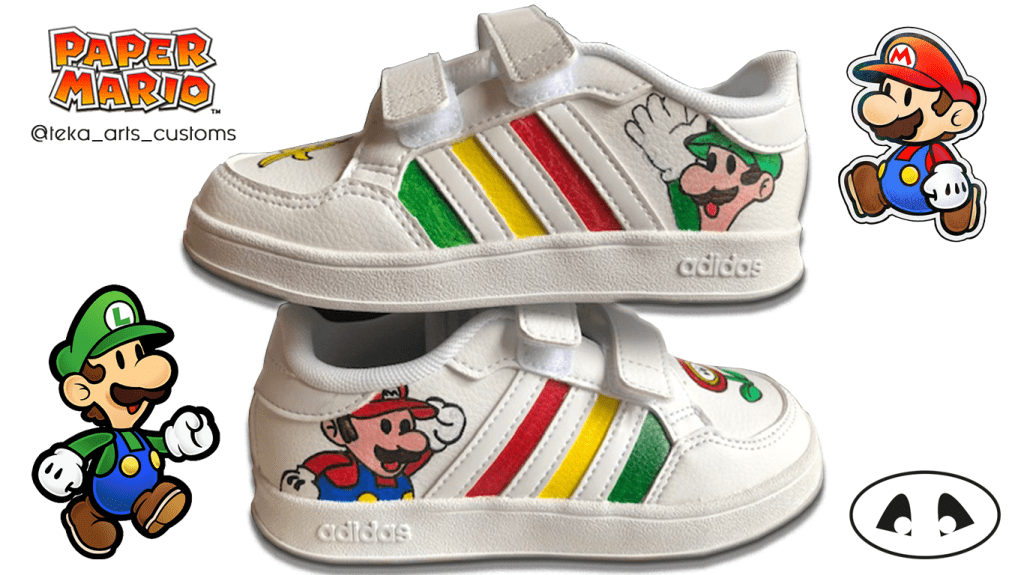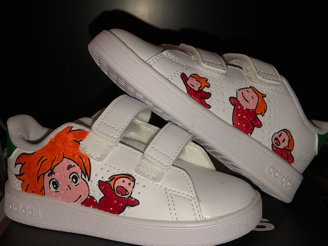 Customisation sur les 2 baskets avec 1 dessin + prénom sur chaque basket selon votre goût. Modèle unique.