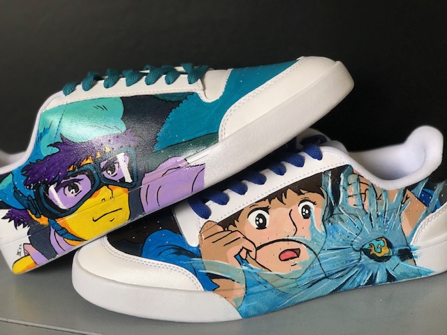 Customisation complète sur les 2 baskets avec un dessin sur chaque basket selon votre goût. Paires de Lacets offertes. Modèle unique.
